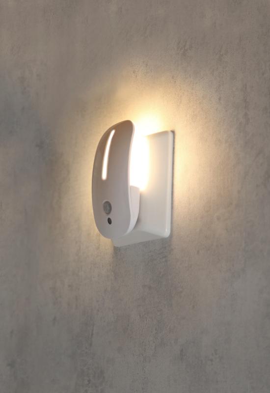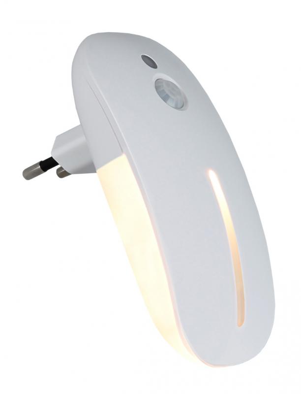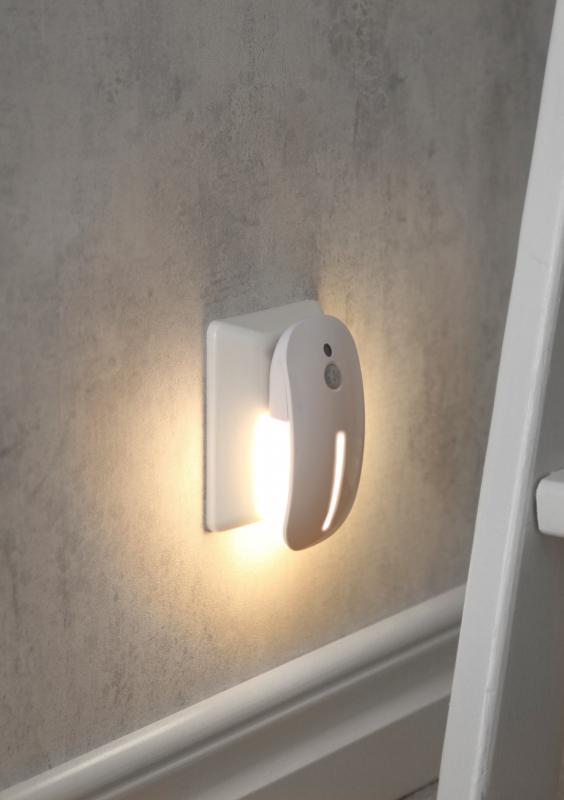 Nattlampa med inbyggd sensor, tänds gör den när det blir mörkt i rummet, denna modellen har även en inbyggd rörelsevakt som gör att den ökar i ljusstyrka när du går förbi.