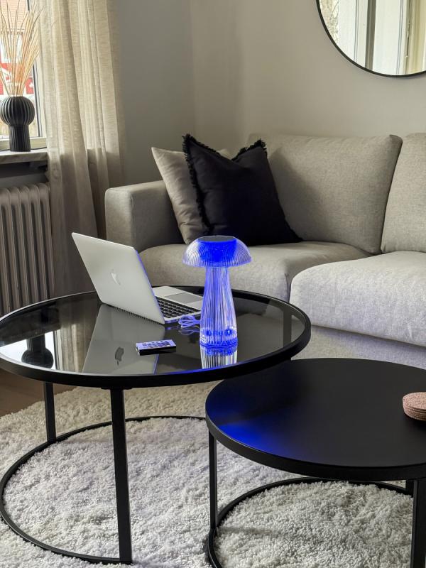Fungi från Aneta Belysning är din nya partykompis! Denna svampformade, uppladdningsbara bordslampa i klar plast har RGB-LED och dimmer. Styr färg och ljus med fjärrkontroll – välj mellan 15 färger eller vitt sken. Mysigt eller maxat? Fungi fixar allt! Perfekt för hyllan eller bordet. Köp nu! #AnetaBelysning