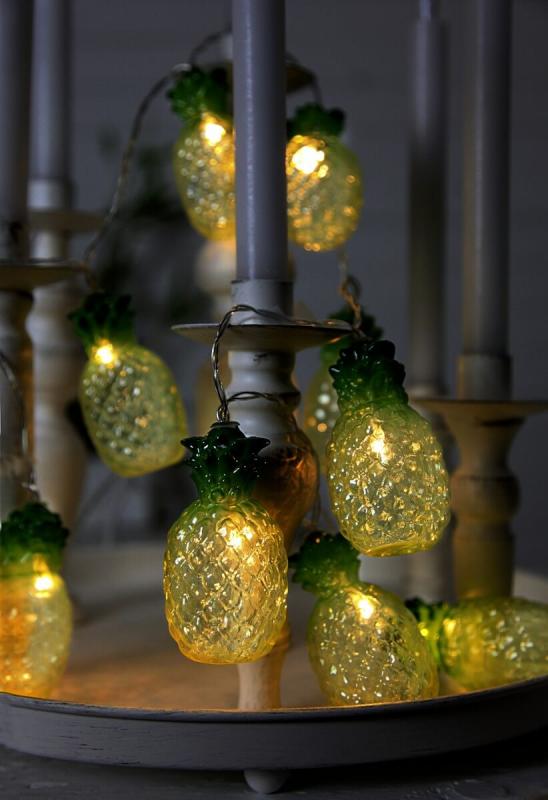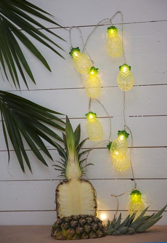 Så festlig liten slinga med 10 stycken lysande ananaser , drivs gör den med batteri och givetvis har den en sån där häftig timerfunktion inbyggd.