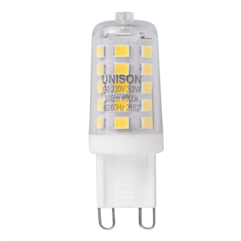 Dimmbar G9 LED från unison på hela 3,2 Watt och 320 lumen med en färg på 4000 kelvin.
