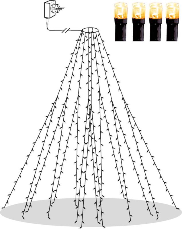 Perfekt julgransslinga med hela 360 LED lampor med vackert gyllene ljussken från star trading. Slingan är ca 2 meter hög med 8 strängar som går ihop i toppen för att få en jämn spridning av lysdioderna. Perfekt för din julgran både inne och utomhus.