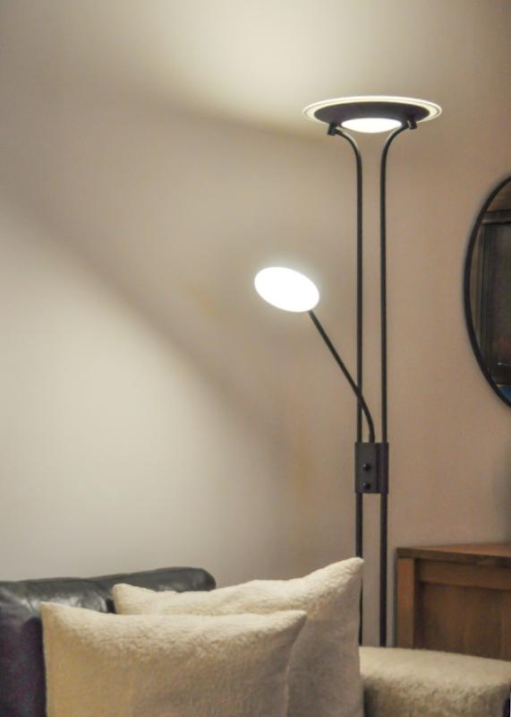 Aneta Belysnings Granada golvuplight kombinerar justerbar allmänbelysning och riktbar läslampa i en tidlös design. Med två integrerade LED-ljuskällor som dimmas separat för optimal kontroll. Passar de flesta hem – perfekt bredvid soffan eller sängen för flexibel belysning. Välj Granada för elegant, funktionell ljus som höjer trivseln i vardagsrum eller sovrum.