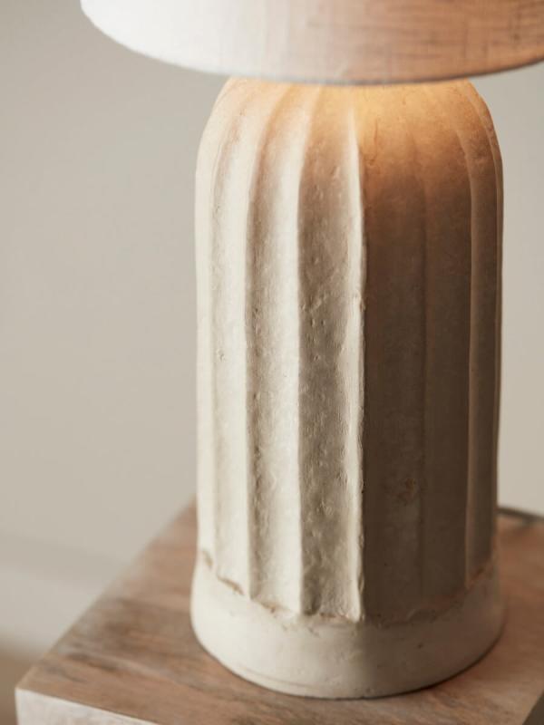 Lampfot Haley från PR-Home är tillverkad av ett keramikliknande material baserat på återvunna material, s.k. ekomix. Haley har en vacker klassisk form med breda räfflor och en slät bård nedtill. Matcha gärna med en cylinderformad skärm, ca 20-25cm. Bra att veta är att denna lampa är tillverkad för hand vilket gör att varje lampa blir unik. Det kan därför förekomma variation i storlek och färg.