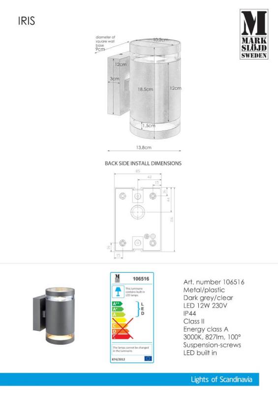 IRIS Vägglampa 2L 10,2cm Mörkgrå