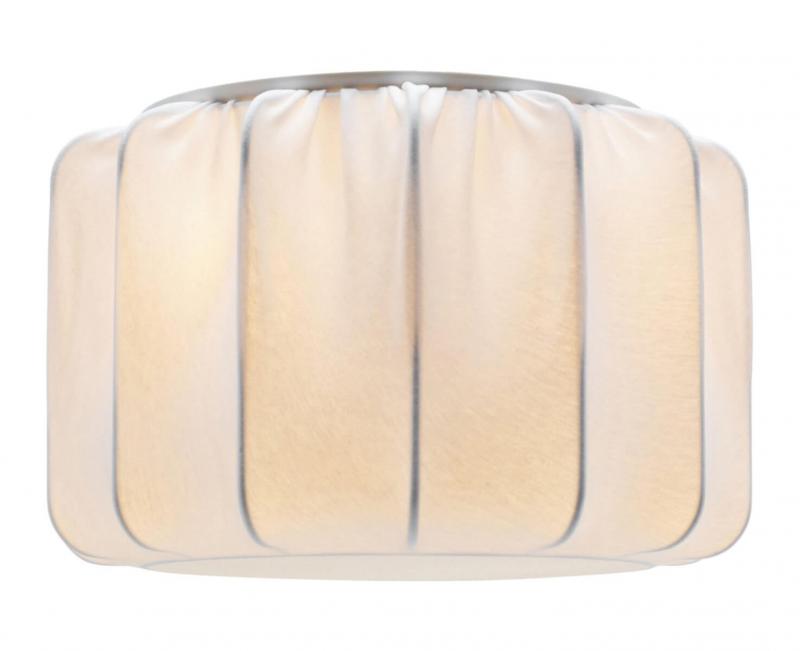 Iris plafond ingår i en serie skärmar i olika storlekar och former klädda i vitt jerseytyg. Skärmens diameter är 30cm och höjden 21cm. Passar utrymmen med lägre så väl som högre tak. Levereras med takkrok för krokupphäng samt 3st E27 lamphållare till globlampor. Takkontakt och ljuskälla köpes separat.