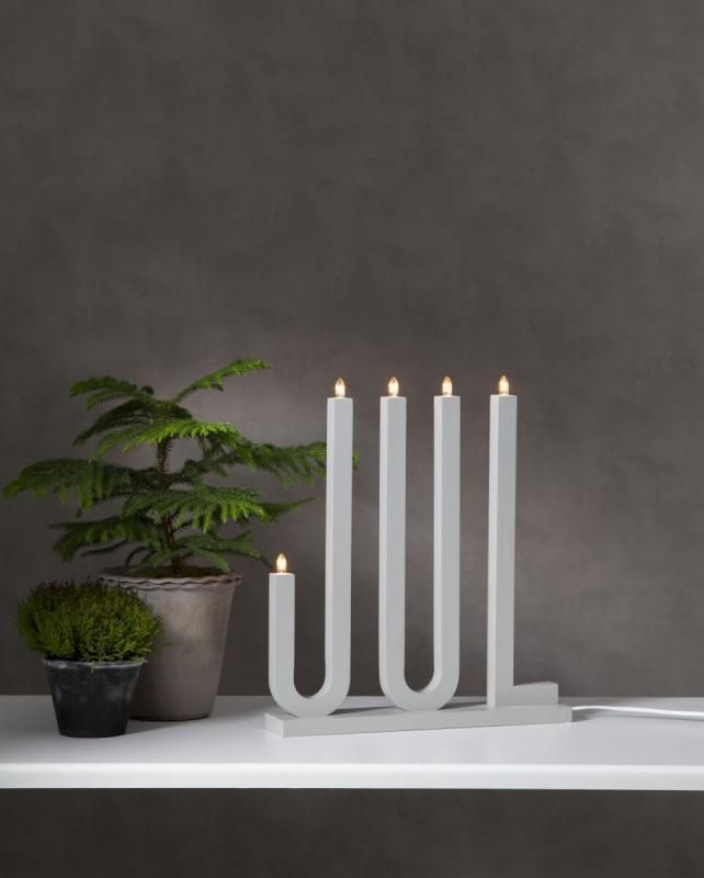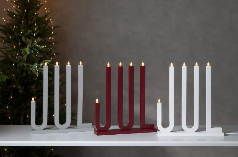 En härligt härlig jul ljusstake i trä från Star Trading med bokstäverna JUL i en väl tilltagen storlek gör den sig utmärkt på en skänk eller i ett fönster. Här ser du JUL i grått.