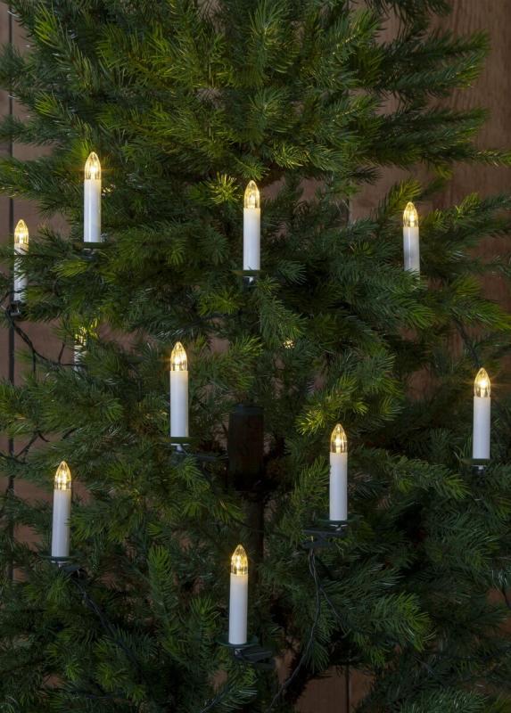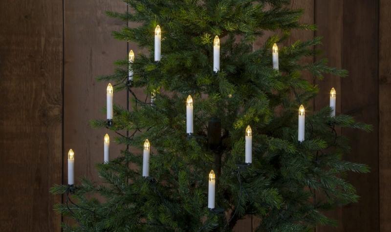 Dubbelledad julgransbelysning i lågvolt (detta gör att kablarna blir tunnare) med 16 ljuskällor för både inom- och utomhusbruk från Star Trading. Ljusen ser verklighetstrogna ut och ger ett klart varmt ljus, variera med eller utan bricka till ljusen. Dekorera granen med denna slinga för att skapa en mysig julkänsla.