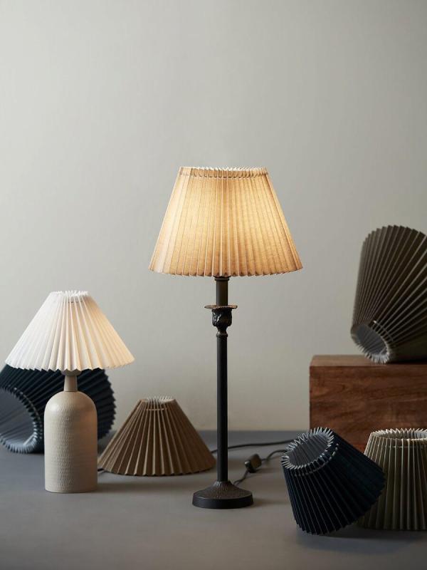 Vackra Karin från PR-Home är en veckad skärm i bomullstyg. Skärmen har en hårt laminerad ljus insida som ger ett vackert jämt och behagligt sken. Måttet från botten till fästet är 3,5 cm. Karin finns i flera färger och storlekar här ser du Karin 28 cm i beige.