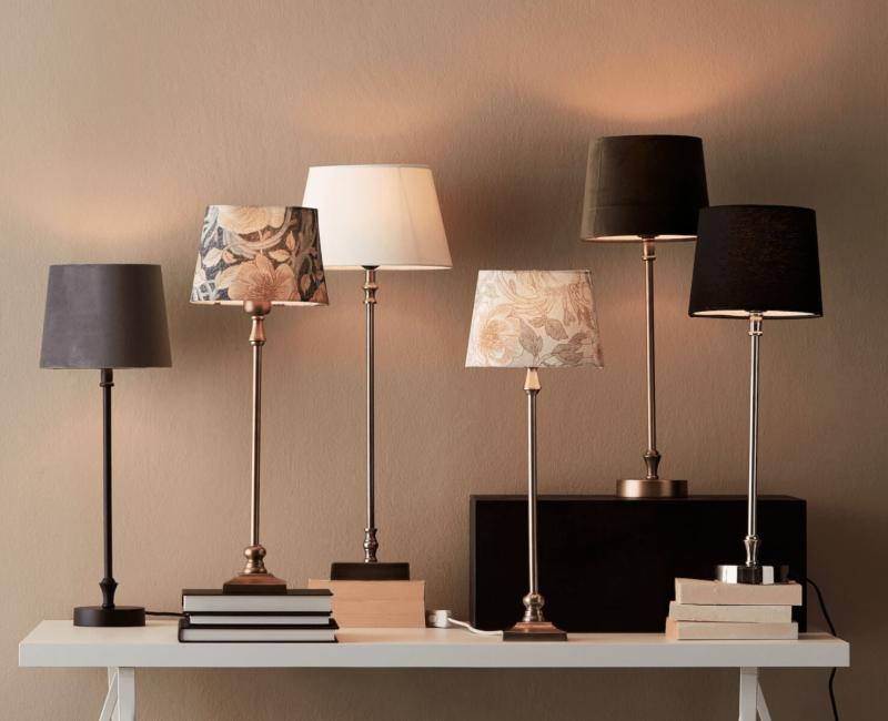 Kim är en komplett bordlampa från PR-Home i tidlös ren design. Kim passar utmärkt i fönster med lite smalare fönsterbräda. Här ser du kim i silverfärgad metall tillsammans med Omera franza oval lampskärm i svart.