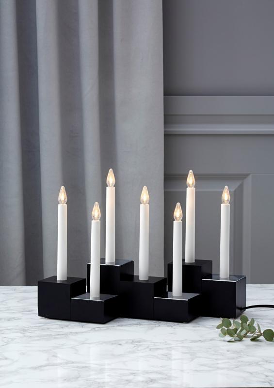 Läcker stilren svart Ljusstake med 7 stycken LED-ljuskällor som skapar stämning i ditt hem med ett varmvitt ljus.