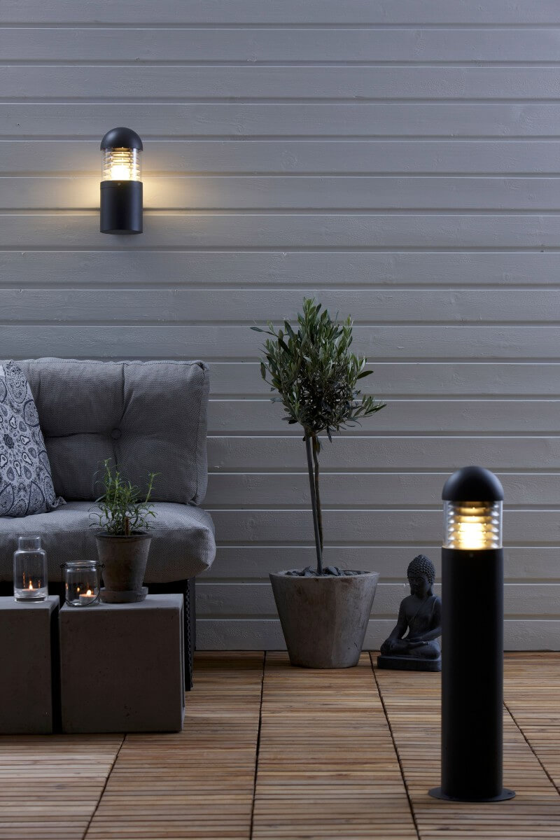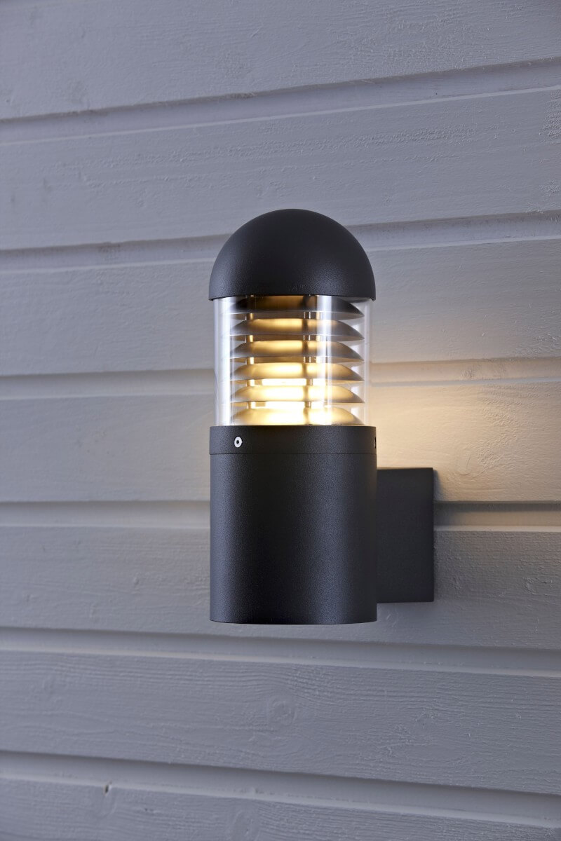 Kurt är en robust utomhuslampa i grålackad gjuten aluminium och klarglas. Med ett snyggt raster i metall som bländskydd.