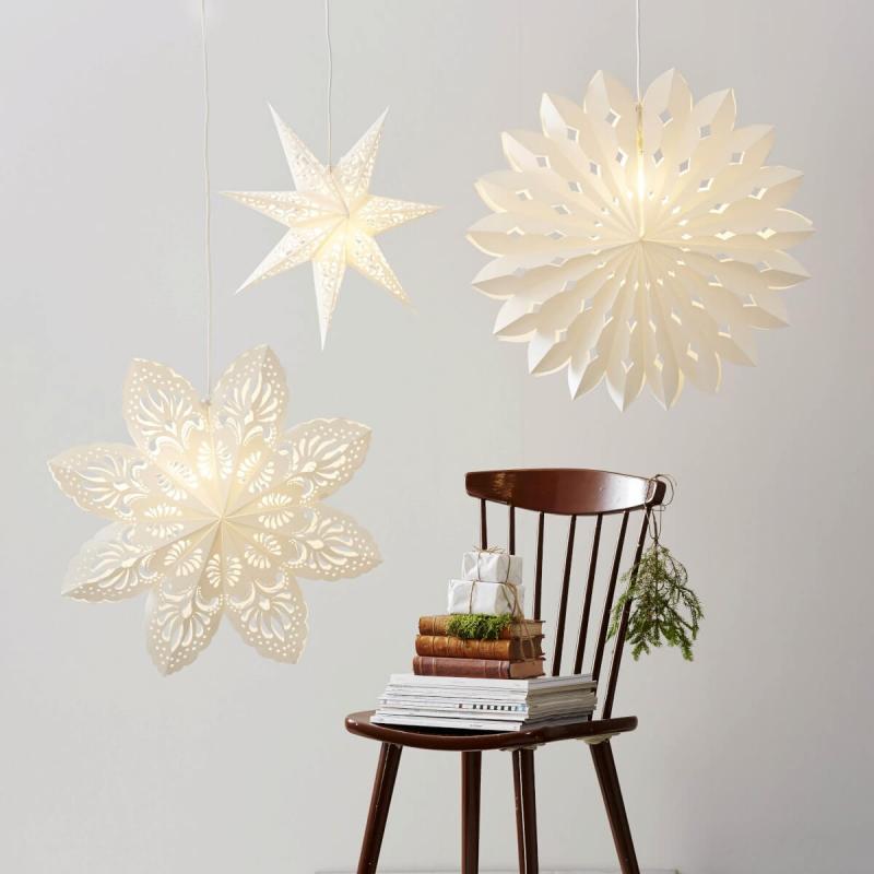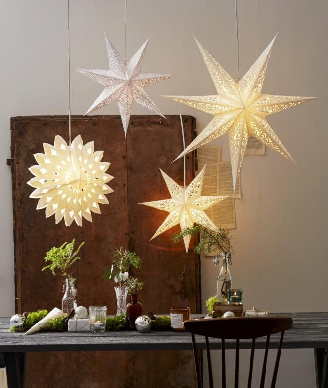 Vackra Lace från Star Trading är en lös vit pappstjärna med ett gnistrande vackert laserskuret mönster som släpper igenom ljuset på ett så vackert sätt! Lace levereras utan sladdställ.