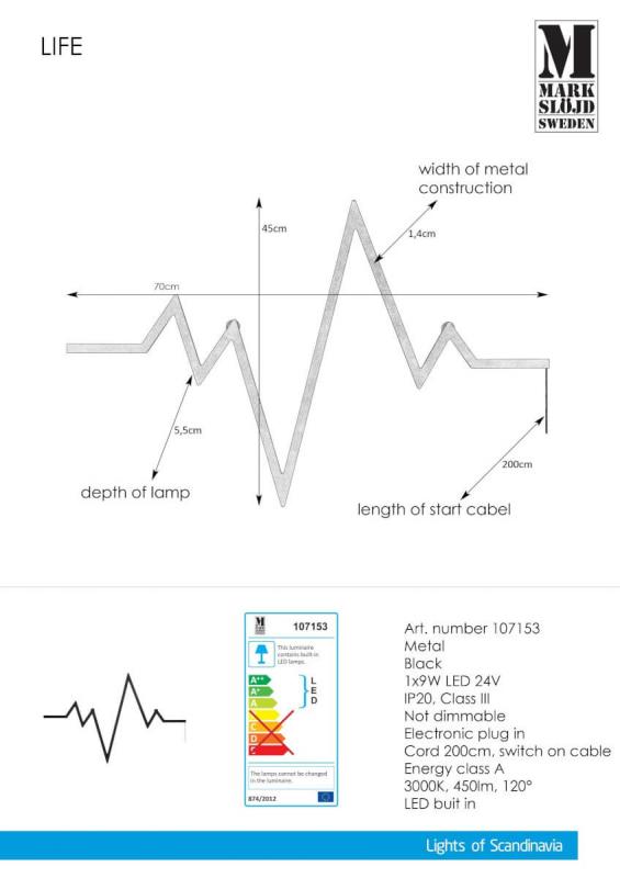 LIFE Vägglampa 70cm Svart