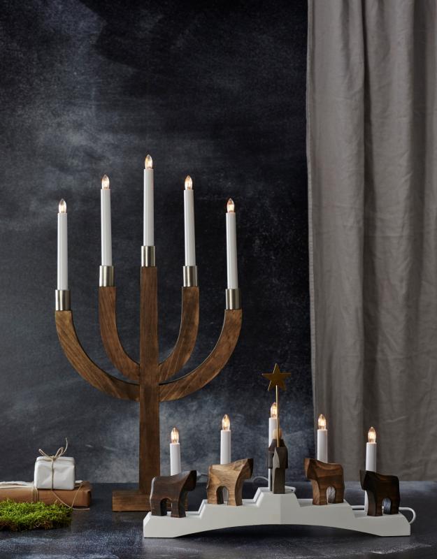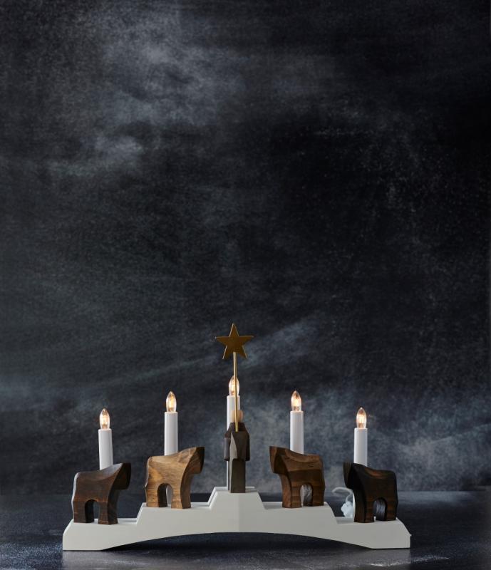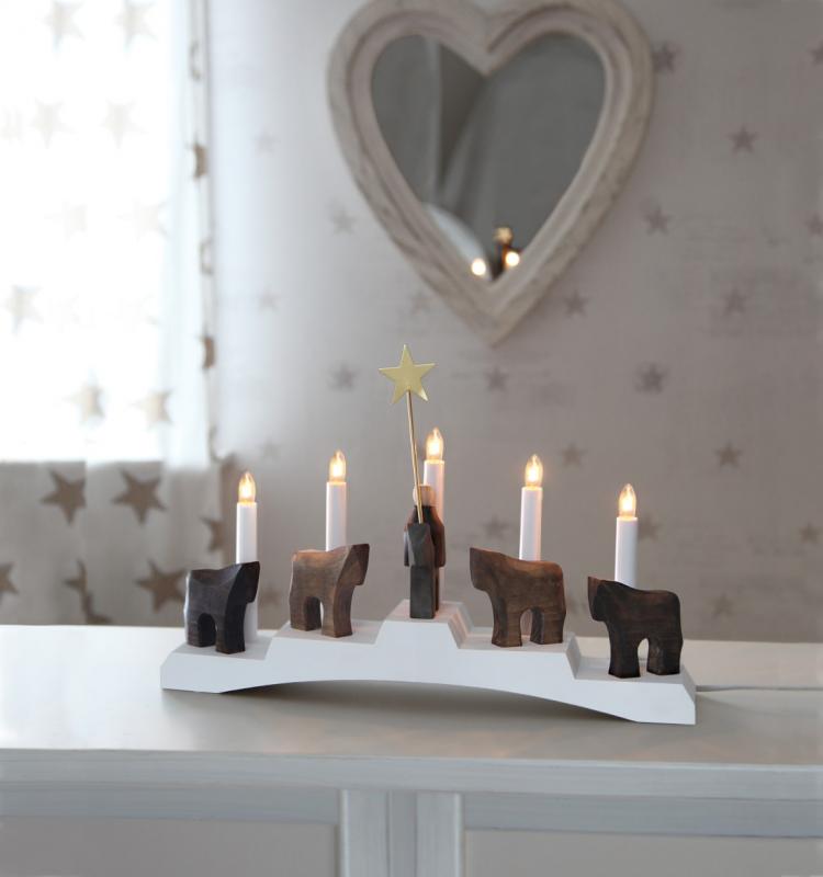 en härlig träljusstake med kul motiv, passar alldeles utmärkt i ett fönster såväl som på en skänk eller varför inte på ett sidobord