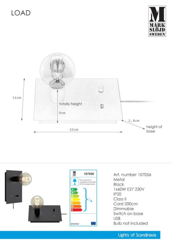 Jodå, lite som det låter faktiskt! Load (Svart) kan du ha som bordlampa eller vägglampa, hen är utrustad med ett USB uttag för enkel laddning av mobil, läsplatta eller liknande. Smart!