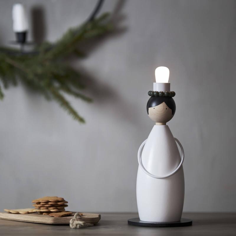Fantastiskt fin svarvad Lucia som adventsljusstake tillverkad i trä från Star Trading. E14 lamphållare så vilken lampa du vill köpa till bestämmer du helt själv. Till denna serien finner du också en tärna, stjärngosse och tomte.