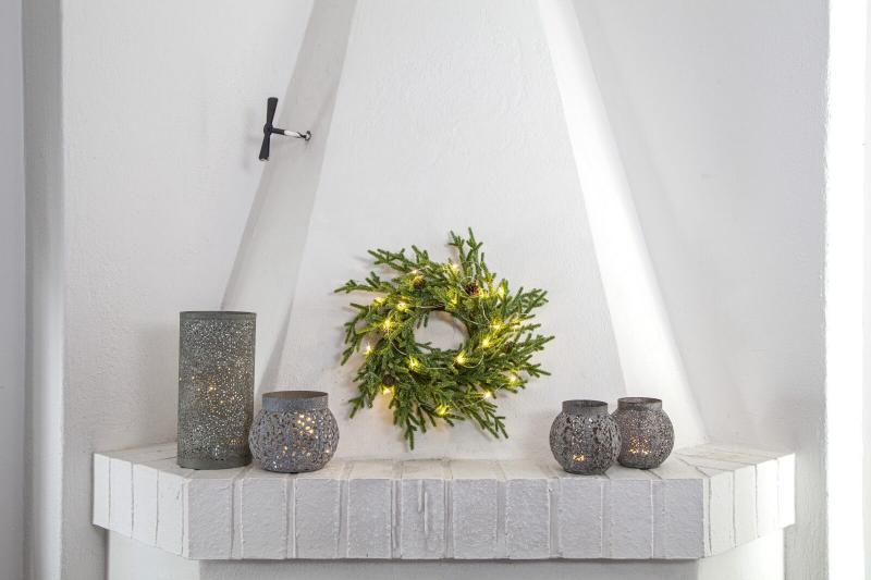Lummer Krans från Star Trading i PE material med lite lagom mycket glitter och små kottar. Lyser upp med 20 små varmvita dew drops.