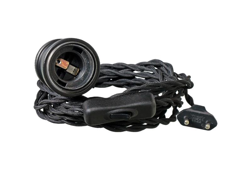 vackert designat lampupphäng i Svart med svart tvinnad textilsladd.