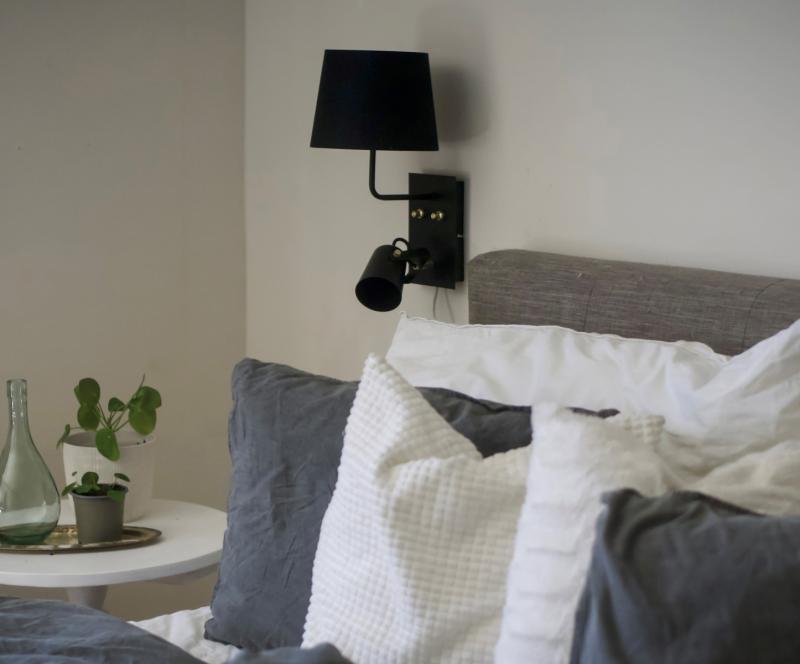 Metz är en ny liten familj med lampor framtagna av Aneta Belysning. Här ser du Metz vägglampa i svart med härliga mässingsdetaljer såsom dimmern som du finner på väggplattan dessutom har den här modellen en kombinerad upplampa med textilskärm. En perfekt lampa för dig som vill kunna rikta ljuset men ändå vill ha något roligare än en vanlig enkel spotlight.
