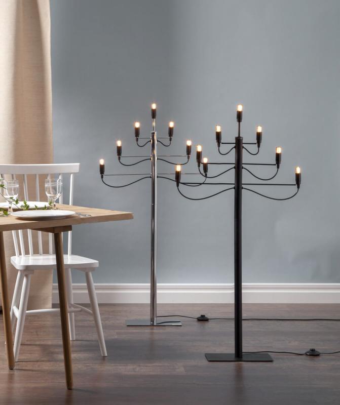 Populära Milano finns nu även i svart golvmodell! En riktigt tuff ljusstake för den som vågar ta ut svängarna! Med 7 stycken E14 ljuskällor bestämmer du själv vilken typ av lampa du vill ha i den. Det finns många varianter, bara att börja designa som du vill ha det!
