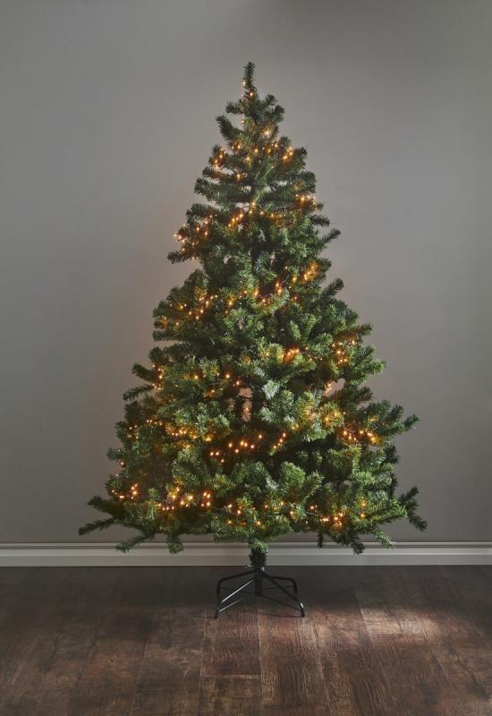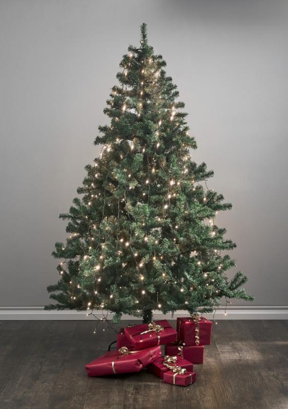 Grön naturtrogen julgran med en höjd på 180cm för inomhus eller utomhusbruk. Formen är som en naturlig gran där grenarna har olika djup, så kallad layer tree