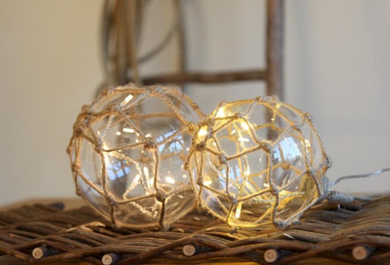 Transparent glaskula med LED-belysning. Dekorationen avger ett vackert varmvitt sken och kan hängas fritt där det passar. Inuti kulan finns det en ljusslinga. Finns även i fler färger och storleken 14 cm.