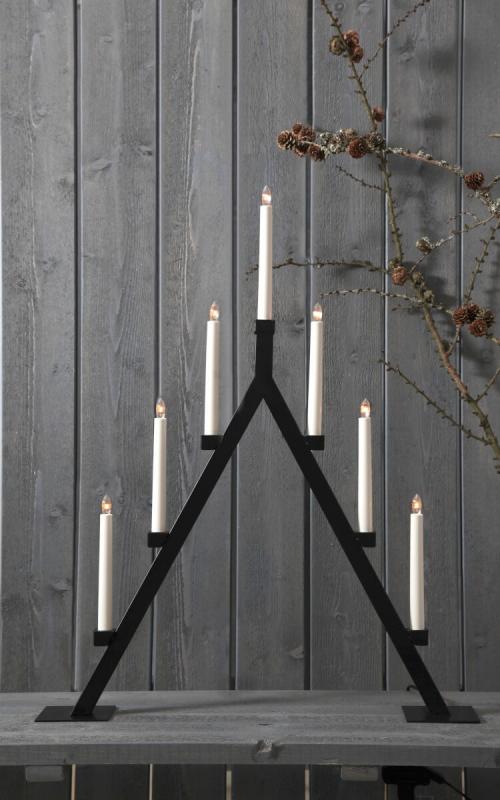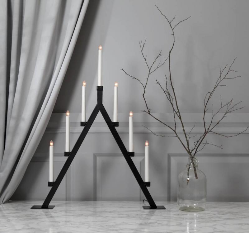 Elegant stor 7-armad metalljusstake i svart. Placera ljusstaken i fönstret eller på golvet för att skapa en härlig adventstämning i hemmet.