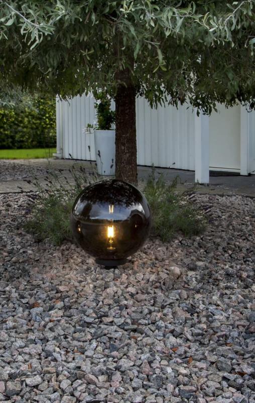 Äntligen är de här, Orby trädgårdsdekoration i form av ett rökfärgat klot med en E27 sockel i mitten så du enkelt kan sätta din egna personliga stil på underverket med val av ljuskälla. Orby gör sig lika väl ensam som i sällskap av sina kompisar i varierande storlekar. Här ser du stora Orby på hela 44 centimeter.