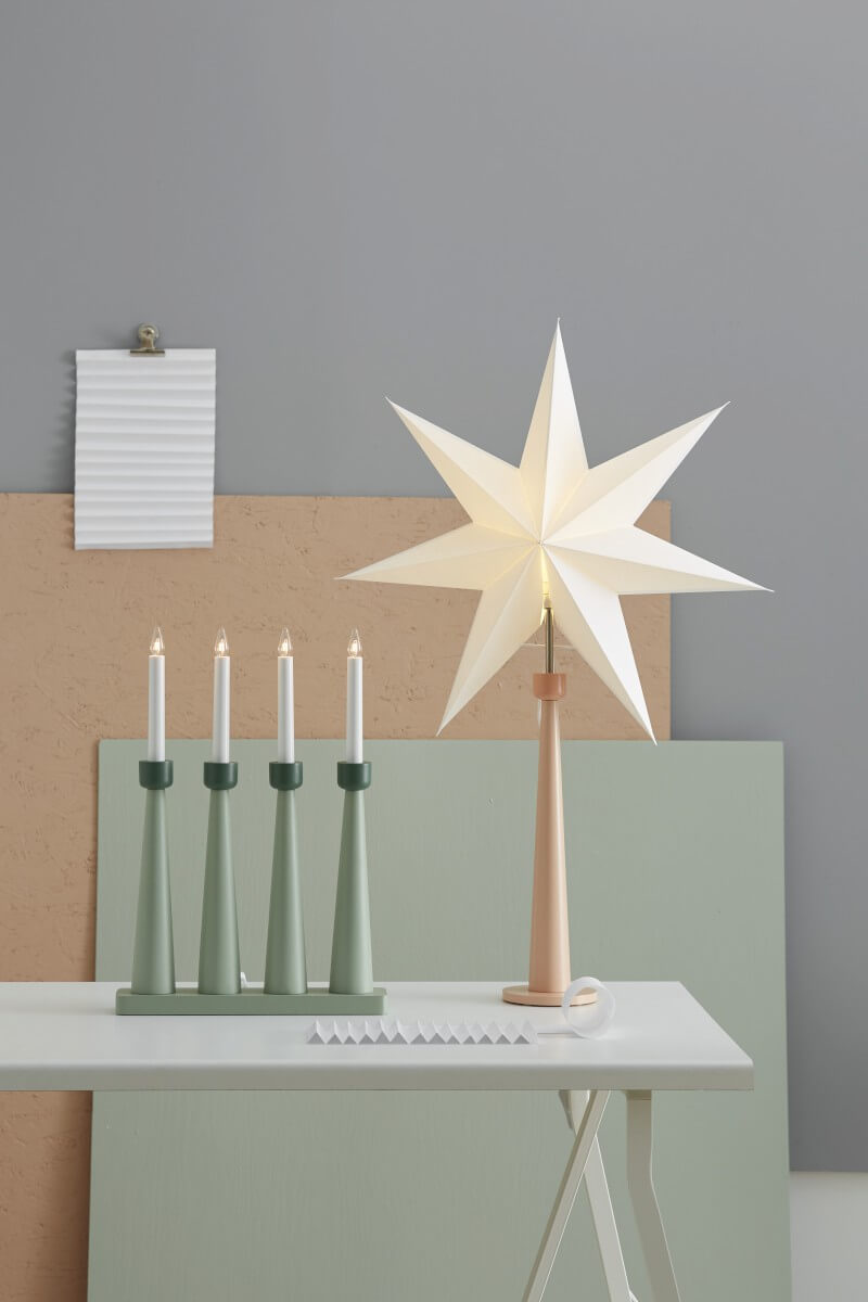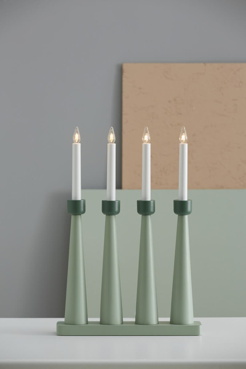 Grönfärgad träljusstake med 4 antika glödlampsljus som ger ett så varmt och vackert sken.