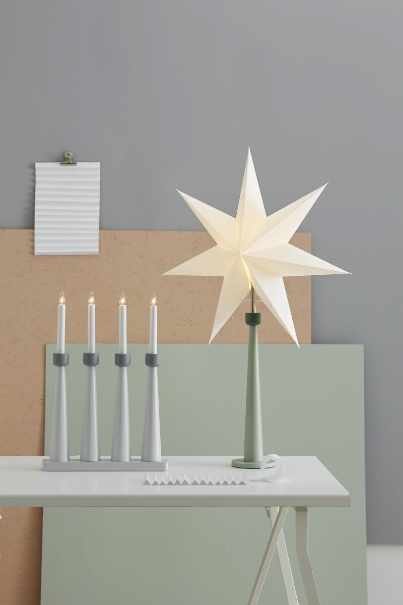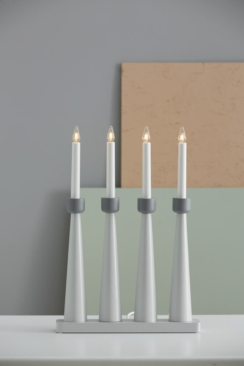 Grå träljusstake med 4 antika glödlampsljus som ger ett så varmt och vackert sken.