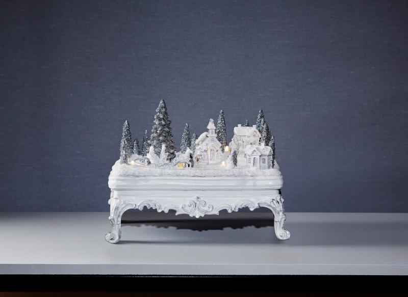 Läcker liten batteridriven bordsdekoration, med många vackra detaljer att titta på och 6 Led lampor lyser vackert.