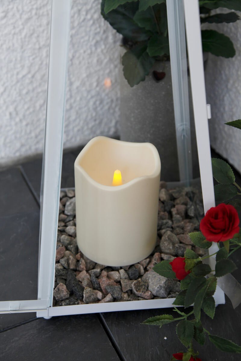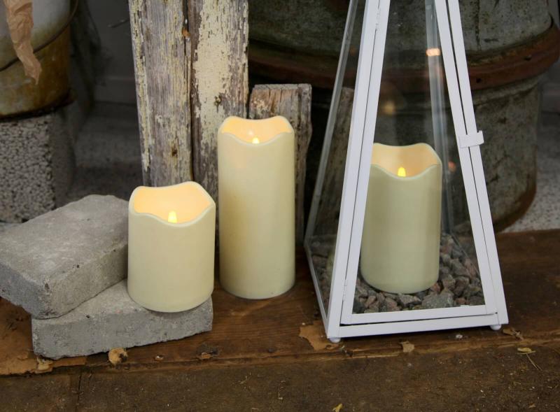 Batteridrivet blockljus i plast för att fungera utomhus såväl som inomhus. Ljuset är beige 12,5cm högt och har en inbyggd timerfunktion och en inbyggd sensor som gör det enkelt att ställa in när ljuset ska lysa. Perfekt att sätta i en lykta på altanen eller trappan för en mysig känsla.