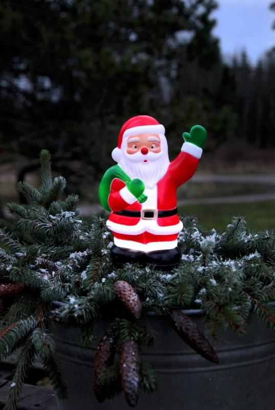 Såååå kul liten tomte på pinne. En härlig utomhusdekoration som garanterat höjer stämningen till jul. Tomten drivs med Batterier så den går att påta ner lite varstans. Den inbyggda timern gör det lätt att ställa in när du vill att den ska lysa.
