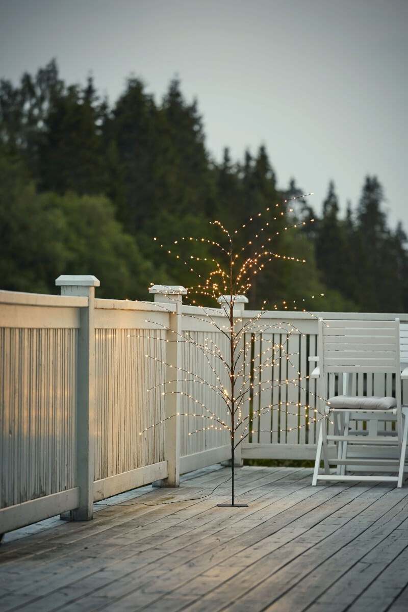 Svart dekorationsträd med LED-lampor från Star Trading för både inom- och utomhusbruk. Underbar dekoration att inreda med i trädgården eller kanske på balkongen eller i en liten kruka inomhus. ger ifrån sig ett fint sken i mörkret.