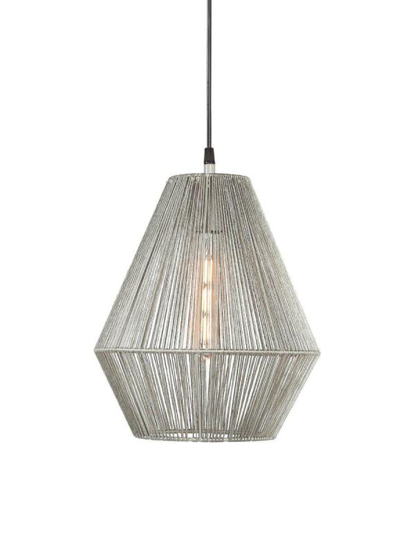 Rio är en stilren taklampa med en ram av metall som virats in i beige garn för hand som bryter ljuset fint genom trådarna. En modern geometrisk form som passar den skandinaviska stilen. Rio har en takkopp för krokupphäng i metall i samma färg som skärmen. Ljuskälla och takkontakt ingår ej.