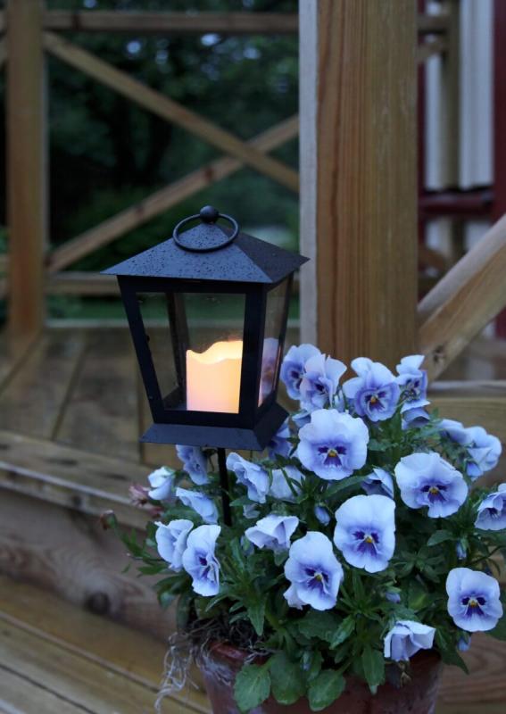 Stilren gravlykta i svart metall från Star Trading, inuti lyktan sitter ett batteridrivet ljus som styrs med en inbyggd timer så att du enkelt kan ställa in när du vill att det ska lysa.