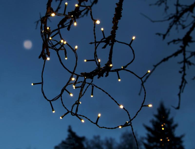 Serie LED ljusslinga med svart kabel för utomhusbruk. Ljusslingan är hela 24 meter lång och har 240 varmvita små LED-ljuskällor. Dekorera träd och buskar med denna ljuvliga ljusslinga.