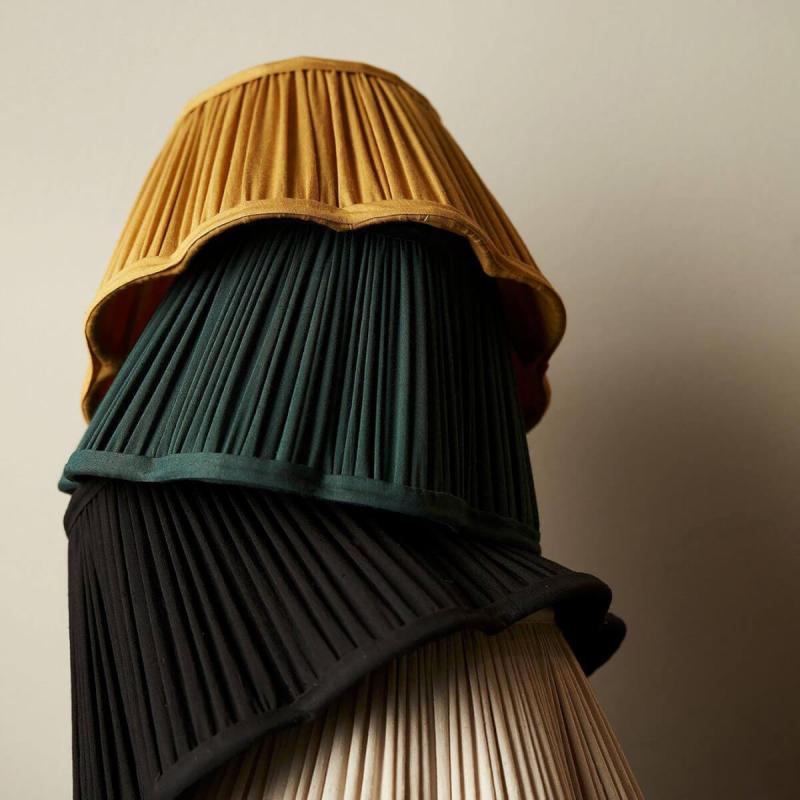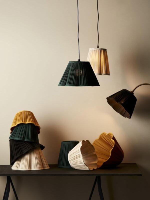 Siv är en serie lampskärmar med Toppringsfäste från PR-Home som är avsedda för golvlampor med läsarm, vägglampor alternativt som en hängande skärm med ett E27 upphäng. Dessa skärmar har en mjukt vågig form med ett plisserat tyg med fodrad insida i samma färg som utsidan. Här ser du Siv 30 cm i svart.