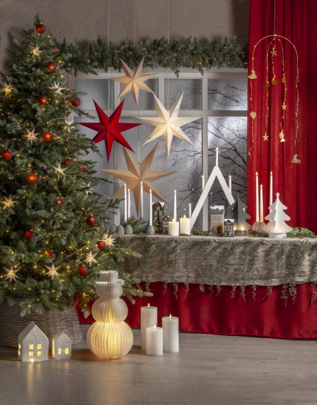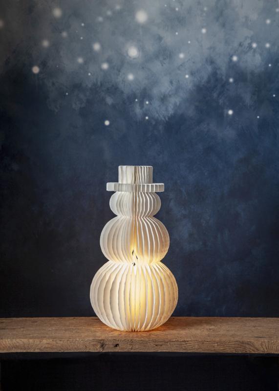 Hur cool är inte den här bordsdekorationen från Star Trading? Snowman är tillverkad helt i vikt papper. Vikningen ger en lugn ljusbild vilket gör att lampan lämpar sig extra väl på en byrå i hallen eller kanske på TV bänken där vi eftersöker mysbelysning. Sladdställ och ljuskälla köpes separat.