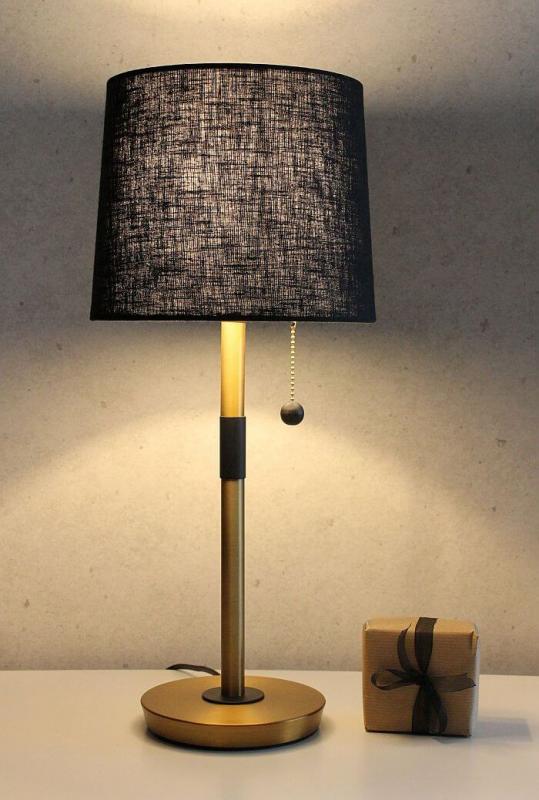 Härligt stilren bordslampa från Oriva som trots sin enkelhet gör ett storstilat intryck med sina små detaljer. Här ser du Stockholm i Brons med svart skärm.