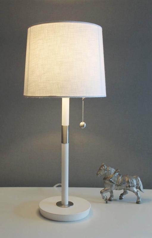 Härligt stilren bordslampa från Oriva som trots sin enkelhet gör ett storstilat intryck med sina små detaljer. Här ser du Stockholm i vit med vit skärm.