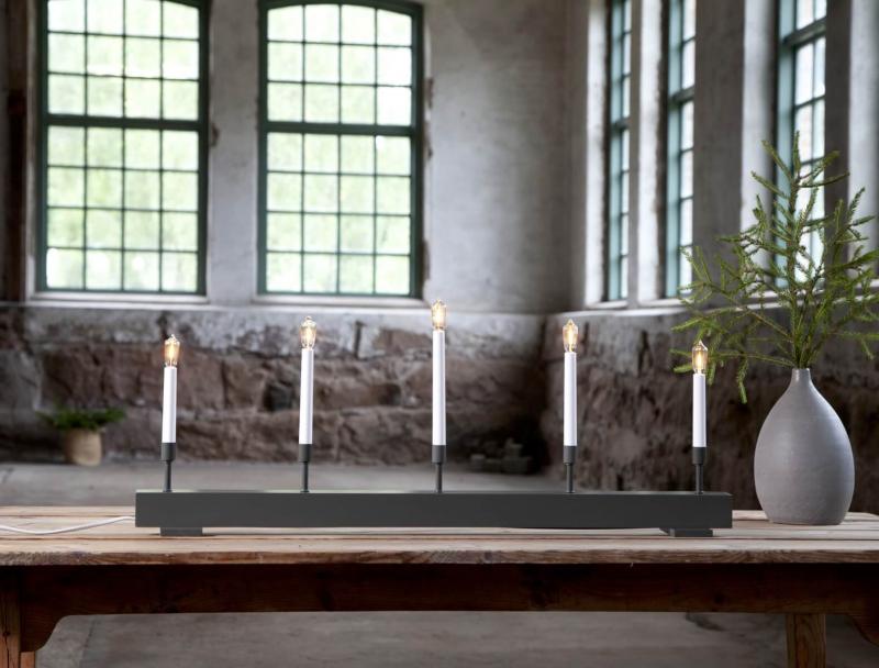 Toppmodern grå rak ljusstake som förmedlar ett elegant och enkel uttryck till både hemmet och den offentliga miljön. Storm sprider ett behagligt ljus med sin 5 ljuskällor.