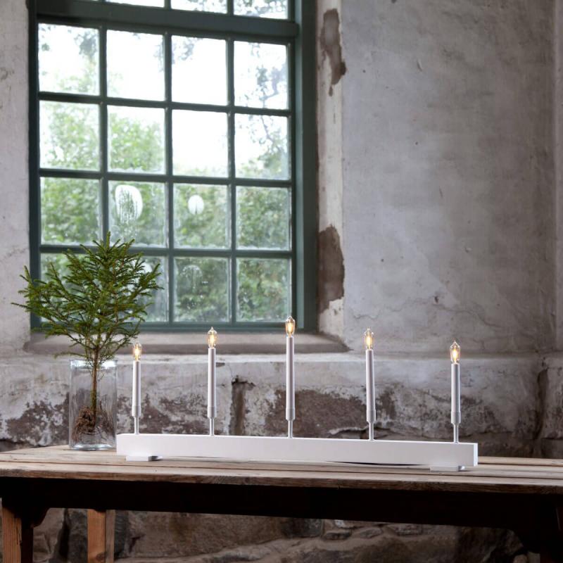 Toppmodern vit rak ljusstake som förmedlar ett elegant och enkel uttryck till både hemmet och den offentliga miljön. Storm sprider ett behagligt ljus med sin 5 ljuskällor.
