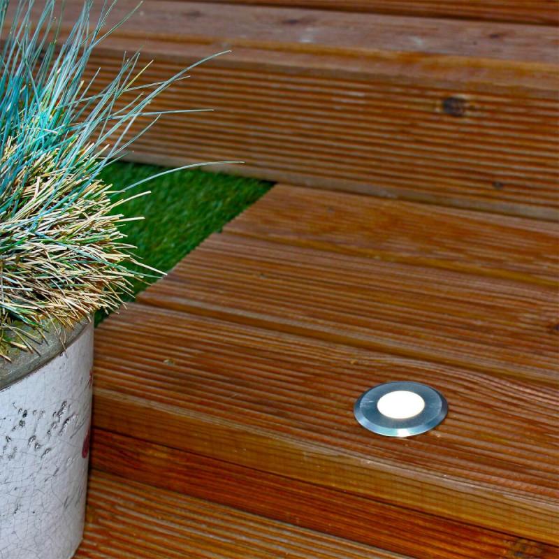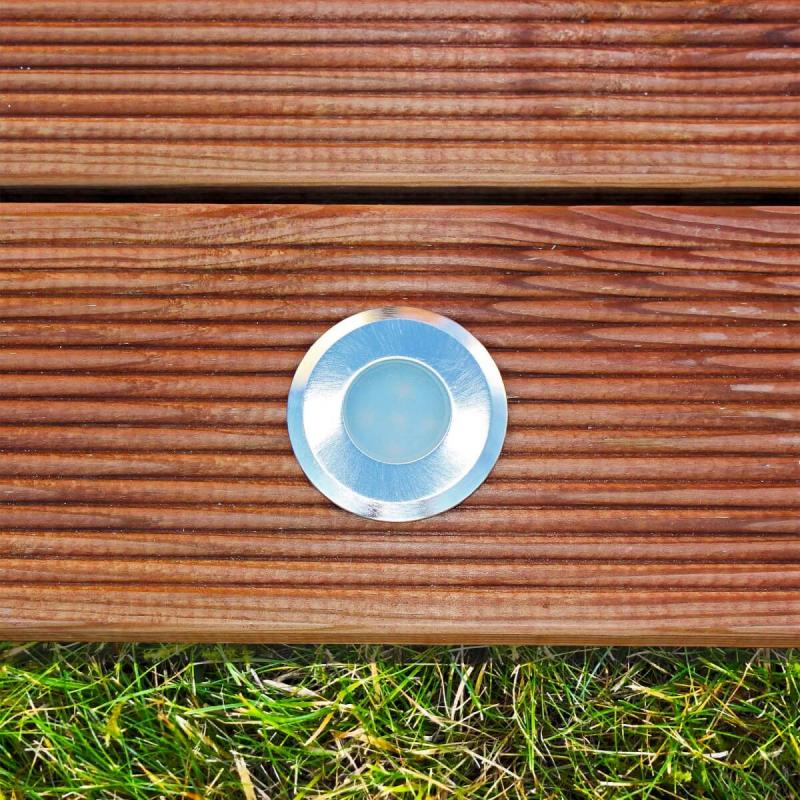 Denna något större decklight passar utmärkt till olika infällningar. Använd gärna på en träterrass eller stensättning för att skapa en lyxig känsla i din utemiljö. Kan även monteras i trappsteg för att undvika snubbelrisk då den frostade ytan inte bländar. Montera på en båtbrygga eller längs en gång, så skapar du ett härligt mjukt ljusflöde samtidigt som ljuset leder dig dit du ska.