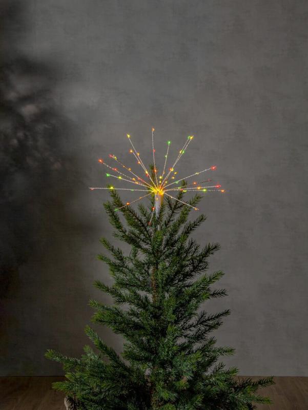Toppstjärna från välkända Star Trading med flerfärgade blinkande ljussken. En riktigt kul juldekoration som blir en blickpunkt i hemmet eller i trädgården. Batteridosa med timer och som även passar för utomhusbruk