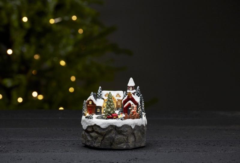 Men hur söt får man vara då? Liten härlig bordsdekoration i färg med ett litet roterande tåg. Batteridrift och timer såklart.