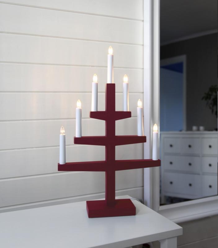 Stilren Röd ljusstake i trä, med sin enkla design passar den enkelt in i alla hem, denna ljusstaken kan du enkelt ändra stil på genom att köpa till någon av våra fina dekorationshyllsor!