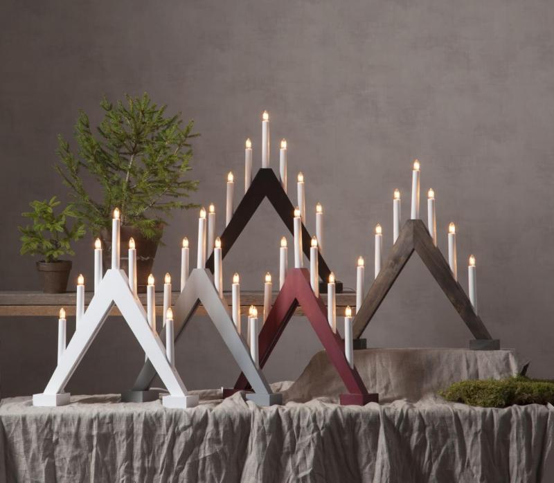 Vi hälsar med varm hand vackra stilrena mini trill välkommen till vårt sortiment! Här i en 7 lågig variant med en stomme rödlackat trä! Så vacker i sin enkelhet!