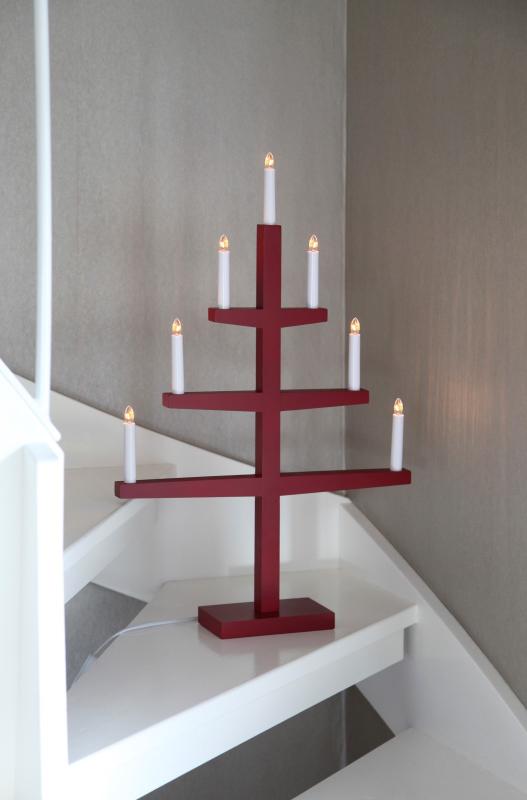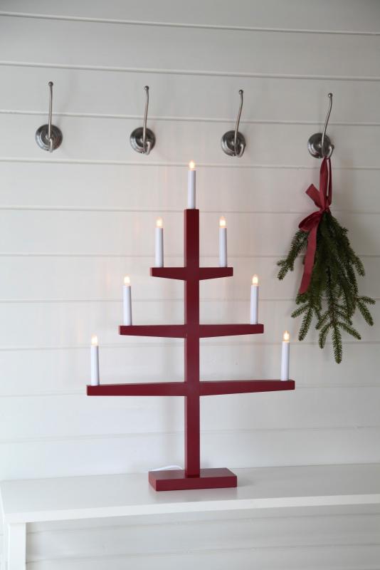 Stilren Röd ljusstake i trä, med sin enkla design passar den enkelt in i alla hem, denna ljusstaken kan du enkelt ändra stil på genom att köpa till någon av våra fina dekorationshyllsor!