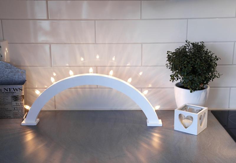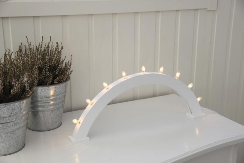 Vit bågformad träljusstake med 9 ljus. Med sin enkla och stilrena design passar den utmärkt i både hem å stuga.